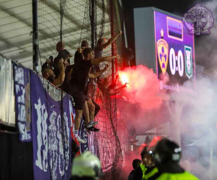 Včerajšnji derbi se je kljub terenski prednosti, končal z remijem (0:0), vendar pa postregel s pestrim dogajanjem na tribunah. Celodnevno nedeljsko deževje ni napovedovalo pretiranega obiska, ampak se je na stadionu kljub temu zbralo približno 7000 obiskovalcev, od tega na jugu okoli 700. Na ograji je udarno mesto ponovno prevzel transparent ULTRAS MARIBOR, zraven njega pa ostali manjši in večji, ter transparenti podskupin. Glasno navijanje se je začelo od samega začetka tekme, odpeta je bila večina anti žabarskih pesmi in ostalega repertoarja južne tribune. V drugem polčasu se je navijanje začelo z nekaj minutno zamudo (večina je še hladila grla s pivom), kot že proti AIK-u je pesem FORZA VIOLE dvignila celotni jug. V 70. minuti sledi lepa bakljada v kombinaciji z vijol'čnimi in rumenimi dimnimi. Gost dim se nekoliko zavleče na igrišče, krajša prekinitev pa sledi tudi za nekaj bakelj, ki so bile odvržene na teren. Nekaj minut kasneje iz zahodne tribune, proti gostujočemu sektorju poleti nekaj pirotehničnih sredstev, odgovor GD (v strahu in paranoji, so celo sami pregledali gostujoči sektor ob prihodu na stadion) sledi pred koncem tekme, ko je v teren odvrženih nekaj bakelj, eno med njimi naš igralec Blaž Vrhovec, vrže nazaj proti severu (isto kot Matjaž Kek leta 1998). Kljub konstatnim napadom na gostujoči gol in odličnemu navijanju, se rezultat do konca tekme ni spremenil. Ob pozdravu igralcev in pesmi V ZMAGI AL' PORAZU, po koncu tekme je prižgano še nekaj pirotehnike. V sredo sledi gostovanje na Švedskem, v petek 2.8. pa se ob 19.00 uri dobimo na južni ploščadi.